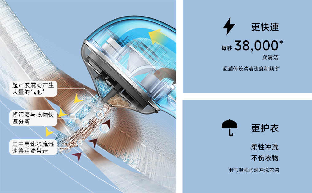超声波振动快速分离污渍高速水流迅速带走污渍